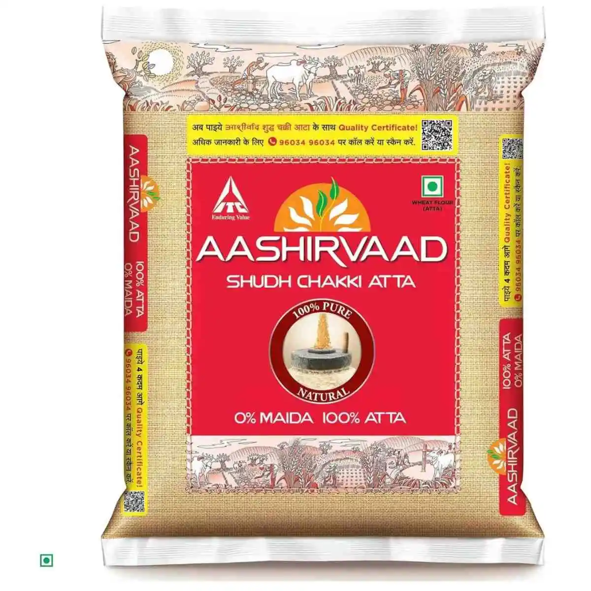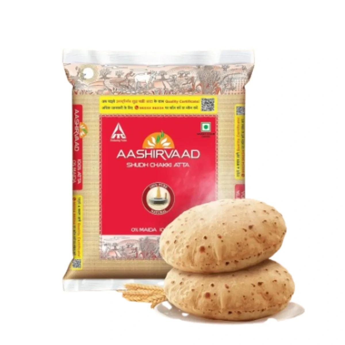 • TRADITIONAL CHAKKI ATTA: The chakki-grinding process ensures that Aashirvaad atta contains 0% Maida and 100% Sampoorna Atta